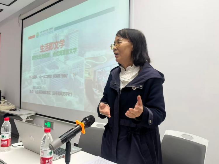10月19日上午,凤天路校区一楼阶梯教室书香满溢。为助力青年学子提升文学素养,兰亭笔筑文学社邀请中国作家协会会员、泰安市作家协会常务副主席、泰山文学院院长齐欣、中国散文学会会员、泰安市作协会员闫洪凤等多位知名作家为分校区师生开展了一场题为“生活即文学”的专题讲座。学院党委委员、副院长匡照忠,公共教育学院负责同志,语文教师代表,兰亭笔筑文学社社员及分校区300余名学生代表参加活动。