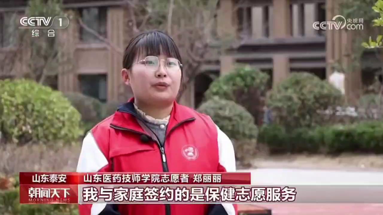 央视新闻在报道中提到,我院青年志愿者在泰安市组织开展的“第62个全国学雷锋纪念日”活动中,化身“家庭保姆”,与社区家庭签约志愿服务,为老年人提供贴心周到的服务。一位社区居民表示:“这些孩子们不仅技术好,还特别有耐心,真是我们身边的‘健康守护者’!”